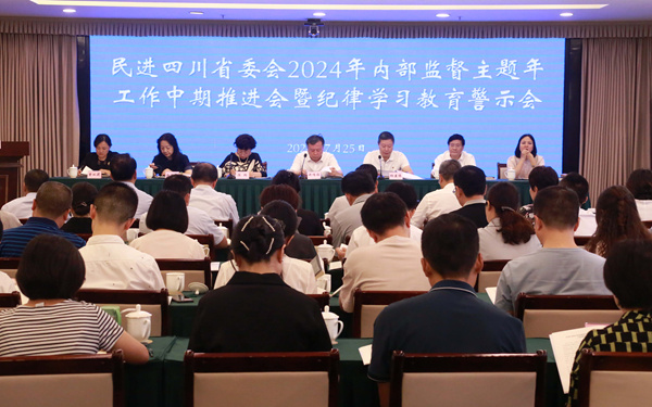 7月25日,民进四川省委会2024年内部监督主题年工作中期推进会暨纪律学习教育警示会在成都召开。省委会主委许唯临,副主委杨建德、陈朗、张宏、赵艳艳、吴新春,秘书长曾从莉出席会议。会议由杨建德主持。