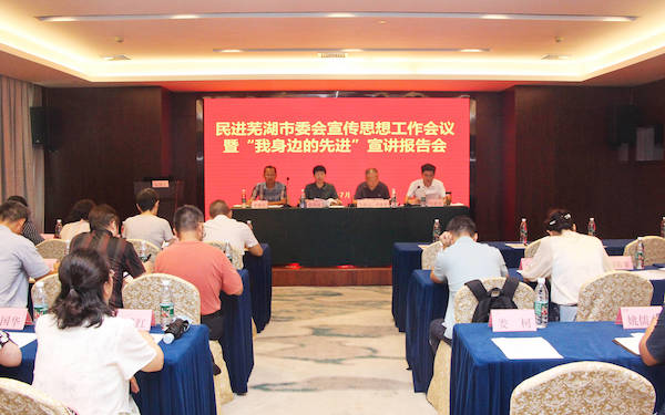 7月24日,民进芜湖市委会宣传思想工作会议暨“我身边的先进”宣讲报告会在铁山宾馆举行。民进安徽省委会副主委、芜湖市委会主委彭凤莲,市委会副主委章建华、李艳午、王志宝出席会议,各支部主委、通讯员、市委会参政党理论研究会成员及市委会机关干部近50人参加会议。