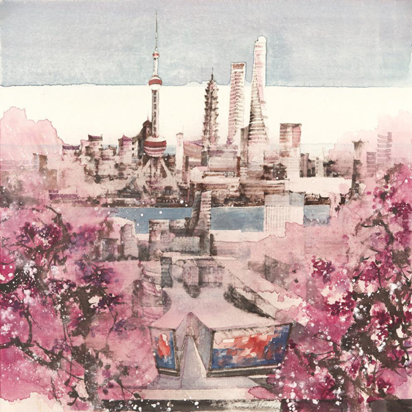 尽管表现现代建筑的钢筋水泥、玻璃幕墙,汪家芳甚至悄然将中国传统绘画中的山水精神融入画面。“城市里的一幢幢建筑就像一座座山峰,拔地而起,慢慢长高。这众多‘山峰’标志着中国正与世界走得越来越近,但同时,城市发展越是快,人们越是需要在喧闹中找一方精神的自留地。”汪家芳透露,想画出“城市山林”中一种诗意栖居般的自在,就像古人寄情山水,在山水画塑造的视觉空间中品味到的那种可游可居的归属感。
