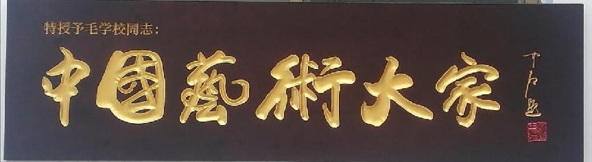 经过多年的辛勤耕耘,毛学校先生成为国内外知名的艺术大家。欧阳中石先生曾为其书写并特赠《中国艺术大家》牌匾。