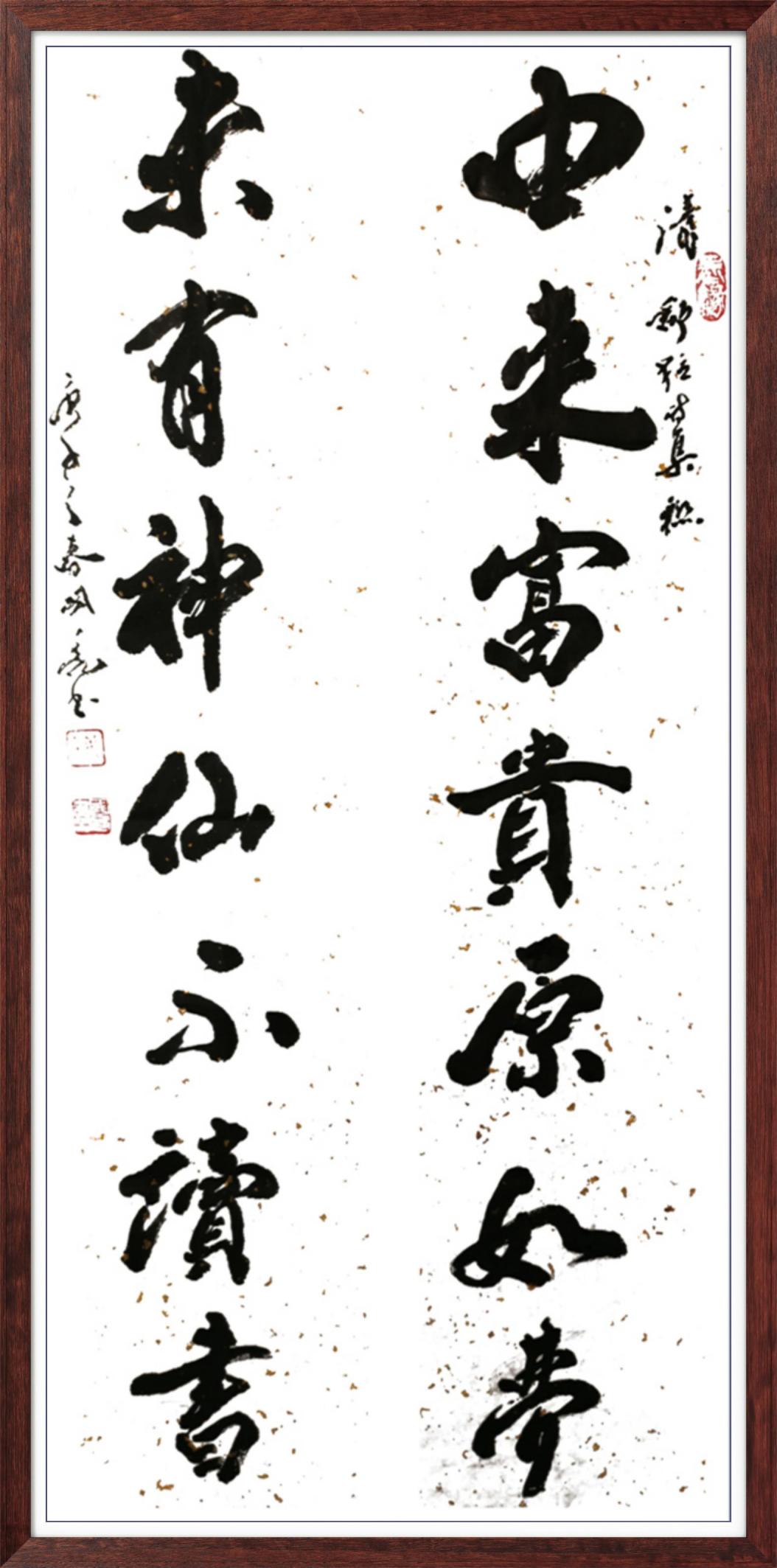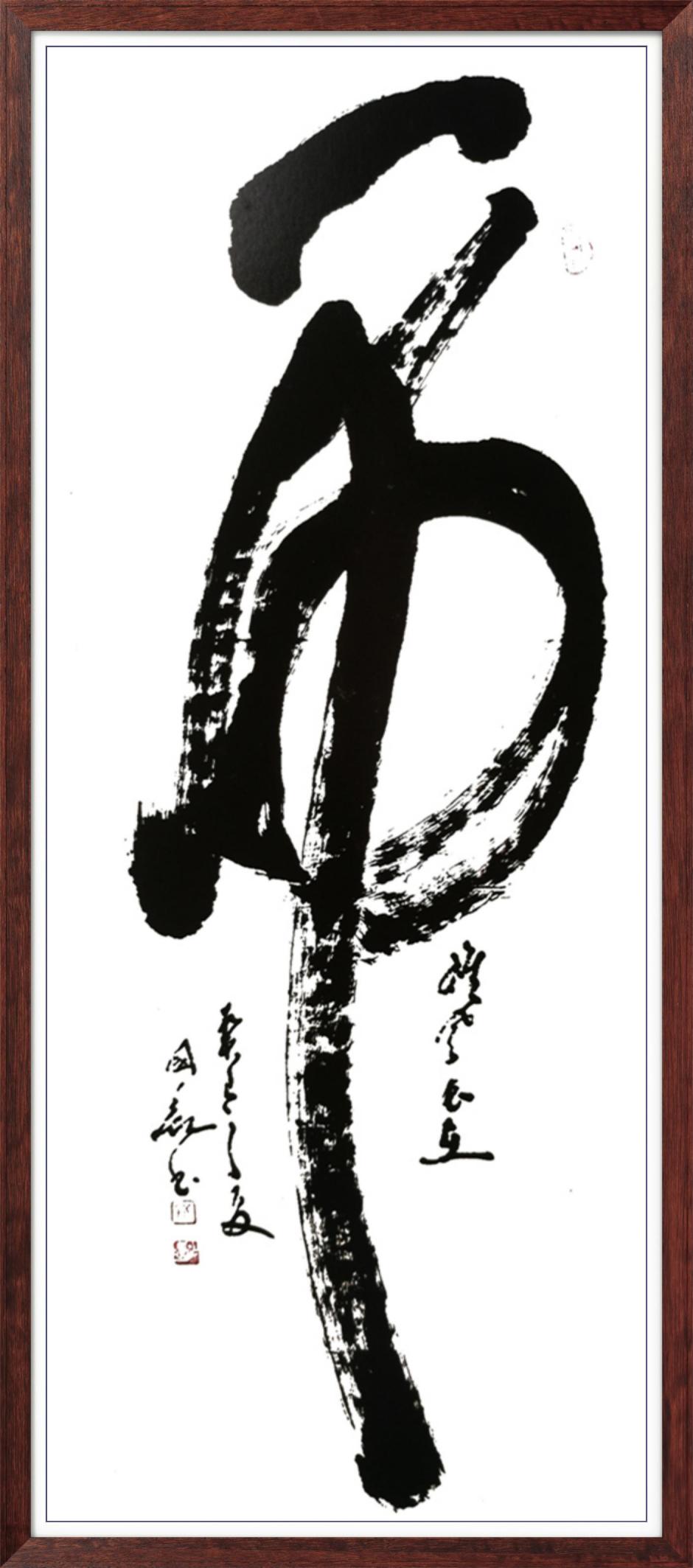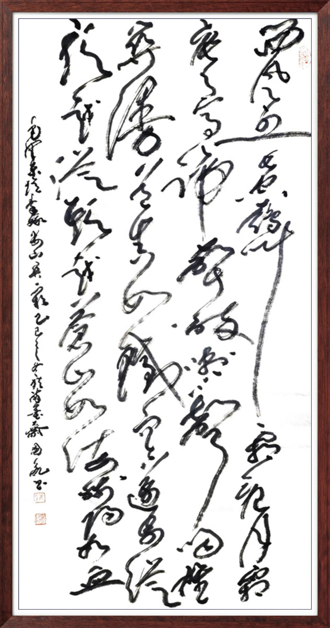 先生之书法,以 “雄强奔放、苍劲洒脱” 立格,独树一帜于书坛。他深耕传统而不泥古,遍临诸家碑帖,深谙汉隶之古朴、唐楷之严谨、行草之灵动,而后破茧成蝶,创新性融合传统技法与现代审美,形成独有的艺术语言。其字迹豪放有力,每一笔皆饱含决心与激情;线条清晰自由,似山水奔涌、松涛激荡,于笔墨流转间传递出磅礴的生命张力。观其作,既能品味《兰亭》之雅韵、《祭侄文稿》之沉郁,亦能感受到当代审美之鲜活,真正实现了 “传统为根、时代为魂” 的艺术表达。更难得者,先生之书法兼具思想深度与情感温度,作品中既有家国情怀的雄浑抒发,亦有人生哲思的清雅流露,使人在视觉震撼之余,更能体悟艺术家内心的澄澈与丰盈。