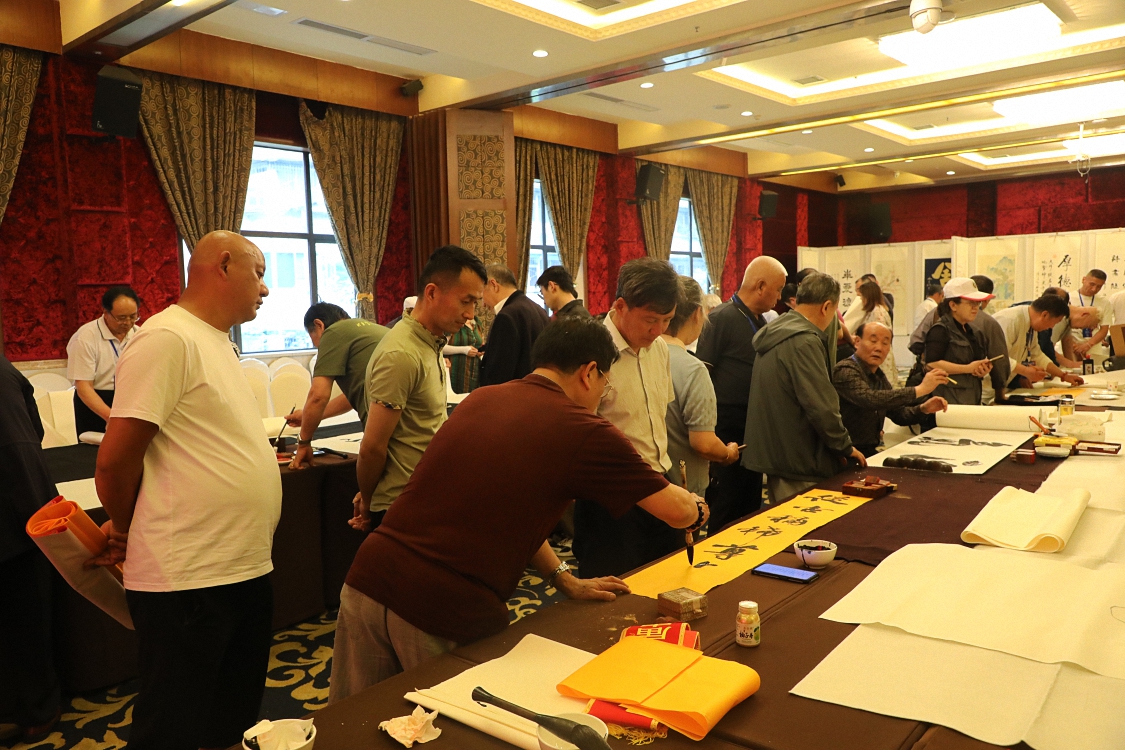 出席本次活动的嘉宾领导有著名美术学教授、北京当代翰墨文化艺术院院长 裴静海、四川大风堂画院执行院长 刘野石、北京当代翰墨文化艺术院专业委员会顾问、新浪书画频道总监 张文生、北京当代翰墨文化艺术院院委会主席 曲传波、齐白石传人 张岩石、住建部乡村振兴专家、中直机关国研院纪检监察处处长 张华、国台办四川办事处主任 马会元、北京当代翰墨文化艺术院顾问 程建华、北京当代翰墨文化艺术院顾问 高启欣、中国科学院 陈 宇处长、天葡庄园总经理 北京当代翰墨文化艺术院顾问 常兆军、军旅歌唱家,全军第一个本硕连读声乐硕士研究生 陈兆全、中警集团董事长 张清岩、贵州省茅台镇国祥酒厂总经理 李新华、北京当代翰墨文化艺术院行政院长 李 君、北京当代翰墨文化艺术院常务院长 金 源、北京当代翰墨文化艺术院秘书长 闫 钰 、北京当代翰墨文化艺术院理事长 张 华 、北京当代翰墨文化艺术院副院长 李梅英、武汉科技大学国学研究中心研究员、西部墨学院院长 崔壬杰、北京当代翰墨文化艺术院河北分院院长 赵胜肖、湖南分院院长 董庆国、青海分院院长 李云峰、安徽分院执行院长 张 华、辽宁分院院长 鞠 波、贵州分院院长 江绍彬、江苏南通分院院长 黄章全。