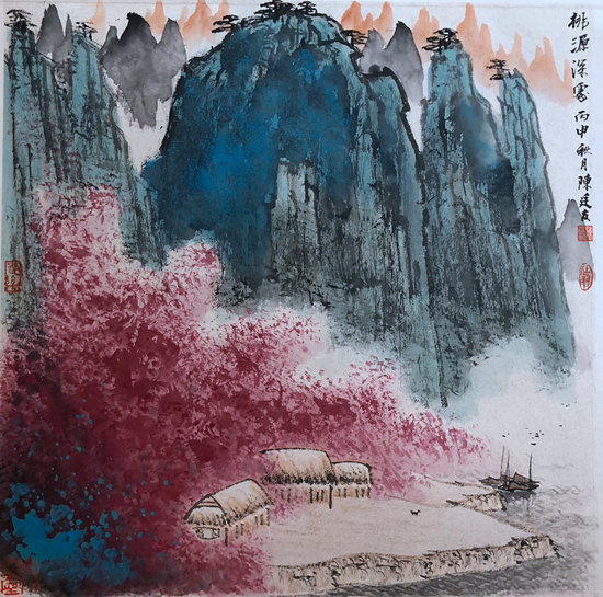 从陈廷友近来专写的黄山图看,他已经走进黄山,初歩建树起具有他个人画貌的水墨黄山艺术。观他的黄山图如梦如幻,正如军旅诗人李中华诗云“奇峰幽壑挂飞泉,溪水淙淙林海喧;墨色蒙蒙烟雾起,云山深处住神仙。”