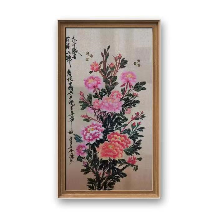 “春去花还在”,以牡丹入画,让盛开的牡丹花,定格成宣纸上永恒的美景,随时带给你视觉上的享受。硕大的花冠,一团团,一簇簇,热烈奔放。画面的色彩清新流畅,每朵牡丹如同一簇簇火苗,变动升腾,在生长动态之中带来永不消逝的希望和兴奋。牡丹花是繁荣昌盛的象征,表达了作者对盛世中国的赞美之情。