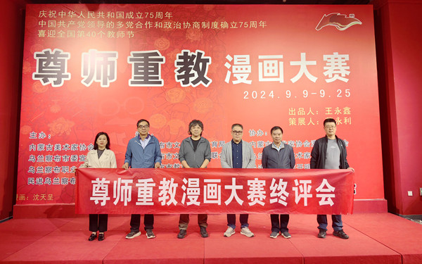 9月9日,由内蒙古美术家协会、乌兰察布市委宣传部、乌兰察布职业学院、民进乌兰察布工作委员会主办的“尊师重教”全国漫画大赛作品展在乌兰察布市美术馆开展,共展出获奖、入选作品175件。