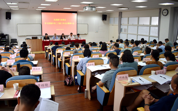 7月27日,民进厦门市委会在厦门国家会计学院召开八届五次全体(扩大)会议,学习贯彻中共二十届三中全会精神。民进福建省委会副主委、厦门市委会主委吴丽冰主持会议并作动员讲话。市委会副主委陈能汪、乐智强、叶瑞碧、庄晏红,市委会委员、副秘书长,各基层组织、专委会负责人及市委会机关干部共105人参加会议。