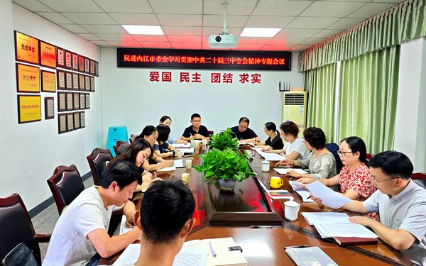 7月31日,民进内江市委会召开会议,专题传达学习中共二十届三中全会精神。民进四川省委会副主委、内江市委会主委陈朗主持会议,市委会副主委秦琴、吴云梅、岳璋出席会议,各支部主委及部分骨干会员参加会议。