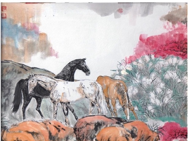 程方平非常喜欢马,绘画作品风格多样,极具观赏性。速写是他常会涉猎的绘画品种,无论是外出开会还是旅游,他都会创作速写作品。这些作品内容丰富,主要包括令人印象深刻的风景、人物、古迹、文化等。例如,他的画集《梵天净土:走进西藏通天之路》收录了许多他在西藏旅行时的速写作品,名家史国良为该书作序,题为《学者绘画可为研究与创作另辟蹊径:观程方平画集“梵天净土”》。