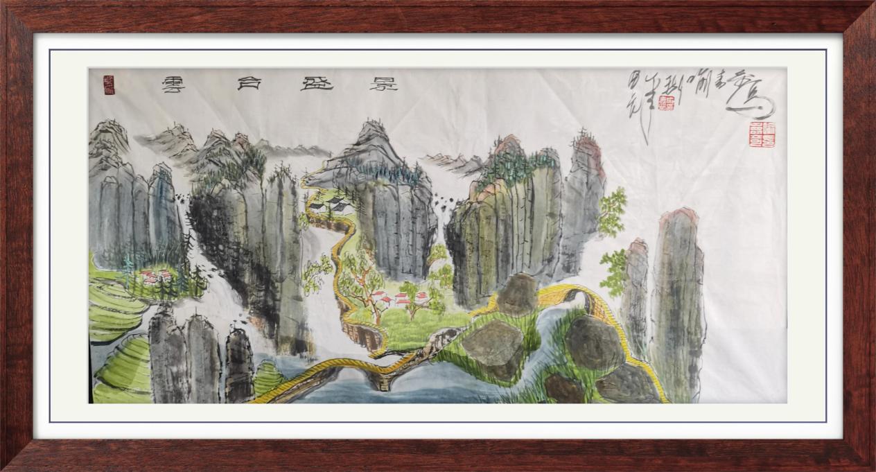 他的作品,笔法细腻且刚劲,墨韵灵动而醇厚,每一笔划都蕴含着对传统文化的尊崇与传承。在新时代的浪潮中,他深入生活,汲取人民的智慧与情感,将时代精神融入笔墨之间。其书画不仅仅是线条与结构的组合,更是对山河壮丽、人民奋斗的生动描绘,对美好生活、民族梦想的深情讴歌。观其佳作,似能感受到时代脉搏的跳动,领略到人民心声的倾诉,为书画艺术在新时代的发展添上浓墨重彩的一笔,也让更多人透过他的作品,感悟中华书画文化的博大精深与无尽魅力。