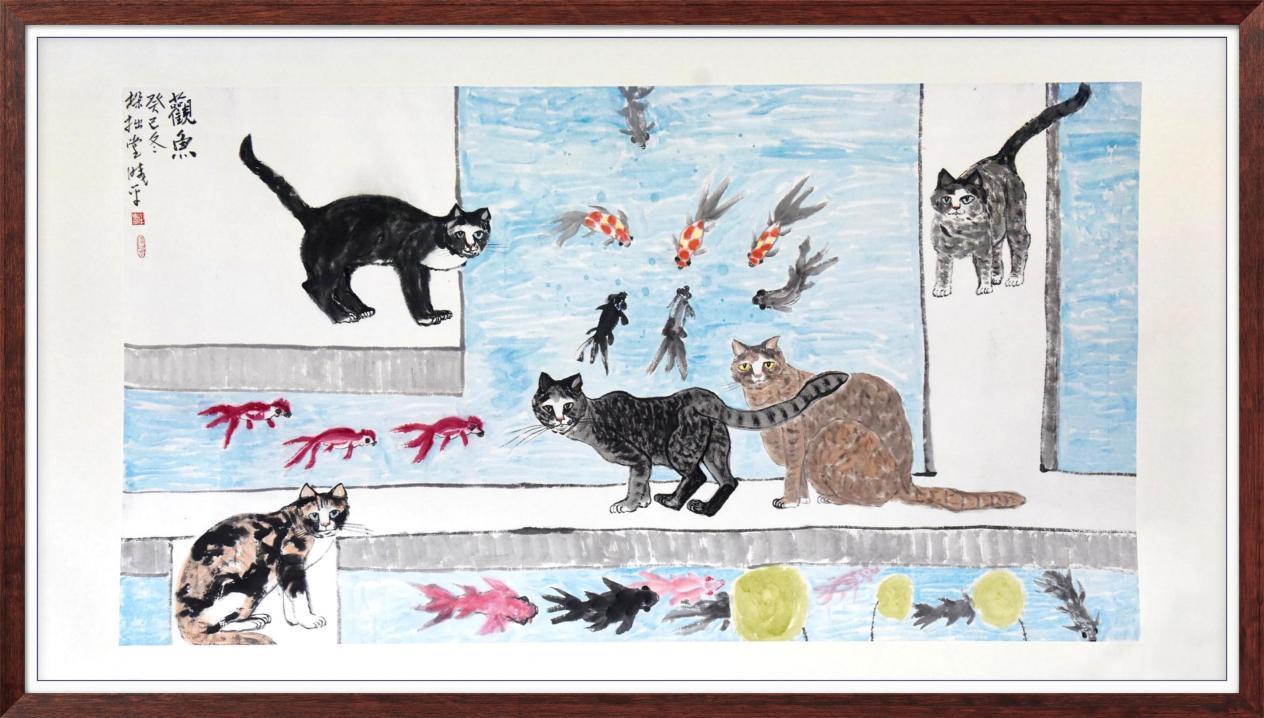 他借鉴清代杰出文学家蒲松龄《聊斋志异》中的“借鬼说事”用于他的“借猫说事”,让他找到了提高画作思想性的抓手。他把探索人生的感悟借用画猫的艺术形式书写出来,使他的作品直指艺术本质。