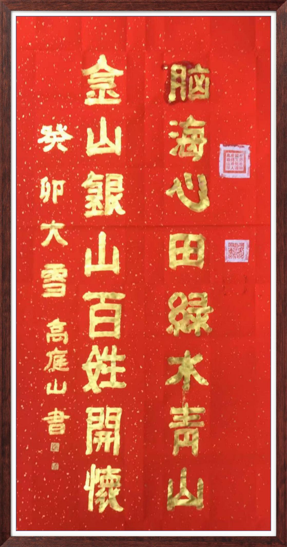 高庭山,中国美术家协会名誉主席。1943 年 10 月生。浙江湖州人。字亭山水清,号山翁。师从爱国画家苕翁、沈鹏先生。2022 中央任命为“中央级专家"。“中国文化发展战略研究部高级研究员”、CCTV-13 中华之光传统文化年度人物,国务院新闻办 2022 年中国艺术白皮书作品入选。荣获“联合国和平艺术金鸽奖"文化和旅游部授予其民间艺术荣誉副主席、央媒文化艺术顾问、国家一级美术师、国家高级非遗书画传承师、中国美术家协会会员、中国收藏家协会会员、十大航天艺术家、获英国皇家艺术学院北极星勋章,获得 2015 年国际和平艺术家荣誉称号和和平鸽勋章,获得法兰西皇家美术学院艺术学博士学位暨法国艺术及文学骑士勋章。