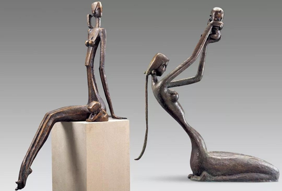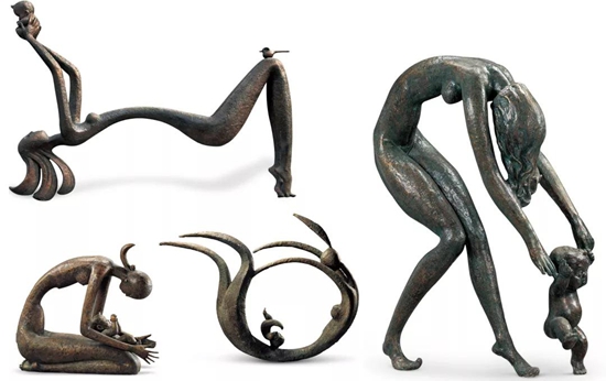 正是这种多变和灵活,才有千姿百态的十二生肖和神情各异的大熊猫,正是这种柔韧而又果断有力,才有了《母与子》的嬉戏和《五云九如》的凌厉。无论是雕塑、绘画还是工艺陶瓷作品,无不渗透着韩美林形的特质。
