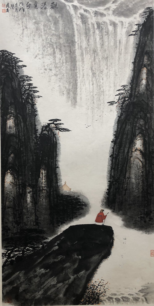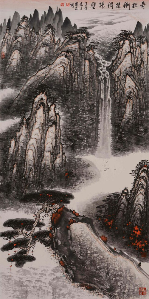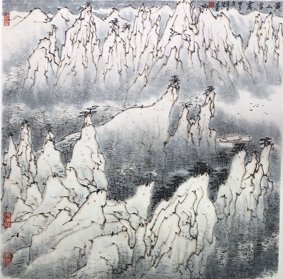 从陈廷友近来专写的黄山图看,他已经走进黄山,初歩建树起具有他个人画貌的水墨黄山艺术。观他的黄山图如梦如幻,正如军旅诗人李中华诗云“奇峰幽壑挂飞泉,溪水淙淙林海喧;墨色蒙蒙烟雾起,云山深处住神仙。”