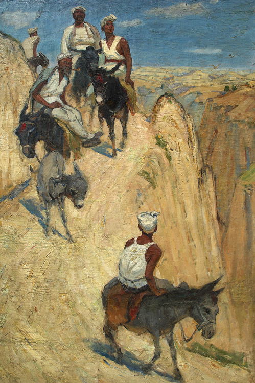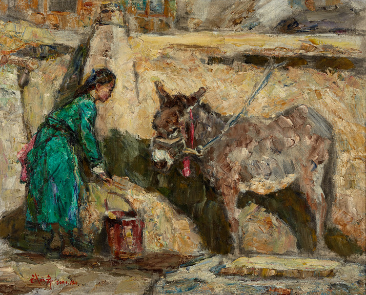 他对农村生活热爱无比,对艺术同样倾心无此。在他的作品中感染人的是内在的真诚情意,表达自己内心敞开的艺术陶治,也体现了他的人生态度,含蓄隐逸。自然之景的绚丽,其温文悠淡的抒写。深耕的田园、沟壑,习空见惯的极其平凡的劳动场景,树荫、黄土、草尖、柳条、小溪流水、收割、牧羊、晨曦、暮归、赶性灵、喂毛驴、赶集、洗羊、放马、母子、爷孙、姑娘、……新时期变革后的农村自由清新的空气,农民自主安定,祥和的精神气质,那种牧歌式的生活气息,人道主义情怀的田园诗意,真切地沁人心脾。我体会到他的油画里有一种历史的存在感。这正是武老师油画艺术最不一般的特征。
