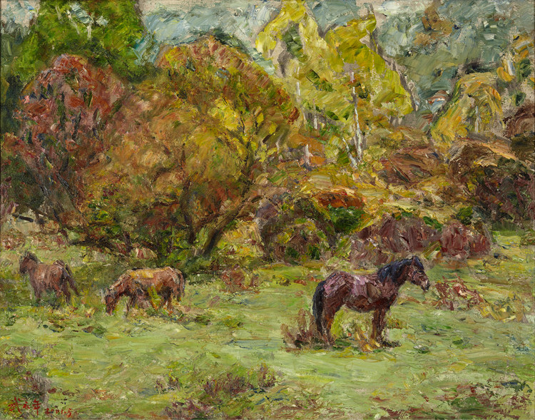 当下流行一种说法,西洋油画注重摹仿自然,尤其在写生的时候,处于被动,受到于客观的透视和光影的束缚。这种看法有一定道理,但也不尽然。但凡进入高出天机以心写物阶段,必有创造性对待客观物象捕捉生机,作出提练选择去舍增减,甚至夸张变形。油画写生如果脱离真切的感受,放弃大自然新鲜美韵的吸引,而用成法套路去作升华,难免使自己陷入习俗,或者误读了油画的特征。武永年老师重视写生。取材纯粹依存感情兴致。油画长于色彩斑斓中瞬间美的渲染,因此他迷恋于光的魅力,娇媚、芬芳的原野、狭谷里的羊群,柔情舒心;清冷的雪天、灿灿银光、静逸安祥。远离喧嚣与污染,轻纱般的朦胧,轻装素颜的色调。灼热烈炎下的绿荫凉爽,逆光下劳作的人们“闪灼着喜悦的神气……”他的画面洋溢着天然妙趣,紧紧抓住一瞬间的光线变化迅速运笔记录下自己心灵感悟,人与景融为一体、不多重复、更不死扣其形。情感促使笔下的激励,画出灵动活现的神情,没有美的矫饰的外表,保持画面灵秀与空灵,画出了陕北特有的自然之美与人性的光芒。他的油画色彩之光闪烁在抽出黄绿嫩芽的柳条上,闪耀在农田绿波上。正午灼热的太阳,日暮时分一片红褐色的晚霞,或冬日微弱的暗影……处处都展现出生活美的真实所见。这是武老师对变革中农村自然美低声吟唱的弦律。